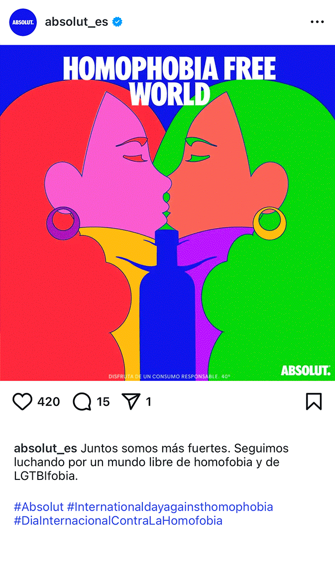 Las ilustraciones de diseñaron con un estilo sencillo pero potente, usando una paleta de colores definida que reforzaba el reconocimiento de marca. La intención era generar piezas atractivas que funcionaran bien de manera orgánica en redes sociales. Estas publicaciones fortalecieron la presencia digital de Absolut y su compromiso con las conversaciones actuales.